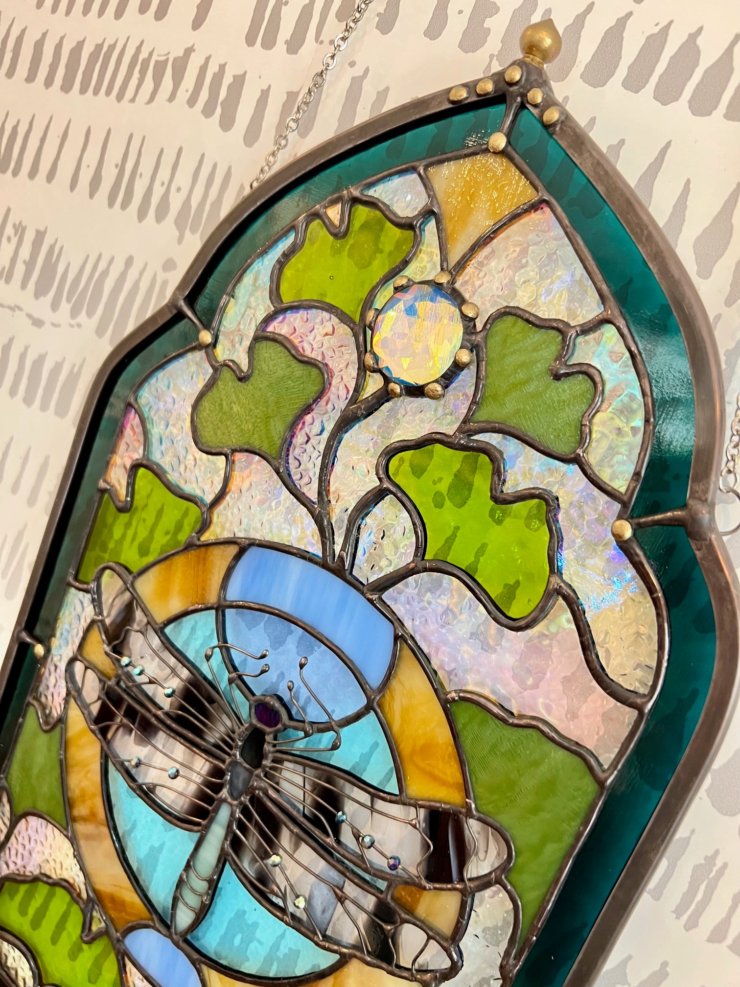 Dragonfly w/Ginkgo Leaves 13" x 8"
